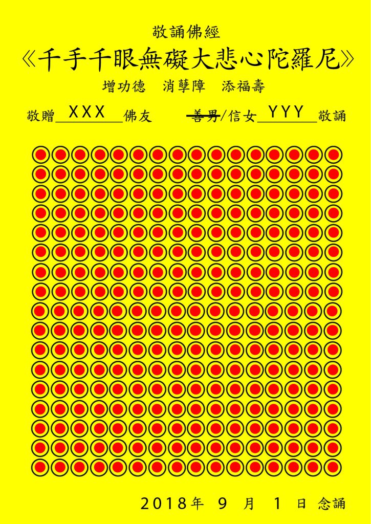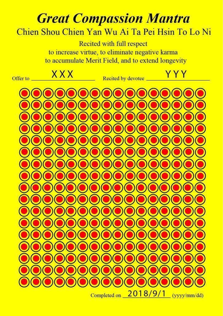 Self-Cultivation Record Form of the Great Compassion Mantra pray for “good health”.
