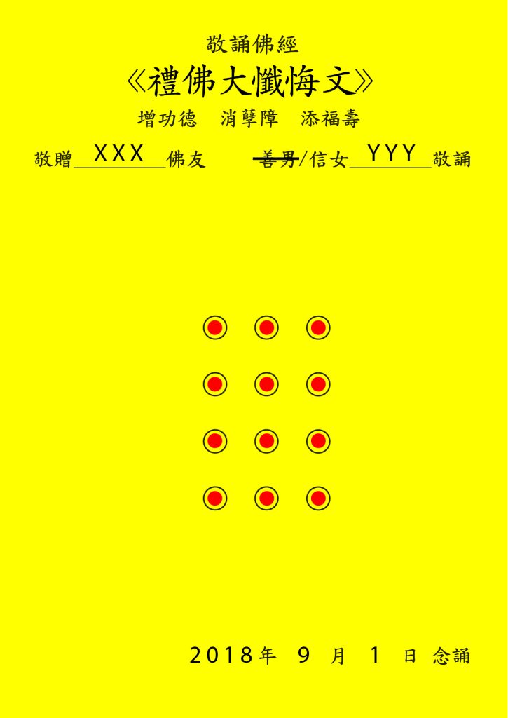 ** Self-Cultivation Record Form of the Eighty-Eight Buddhas Great Repentance pray for “ elimination of karmic obstacles ”.