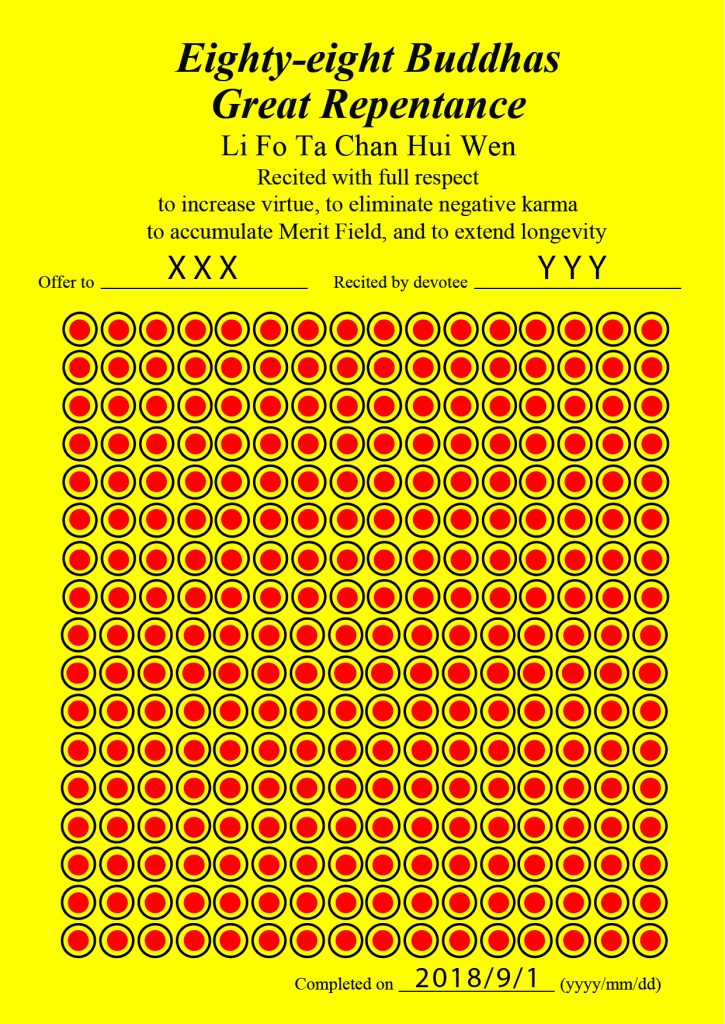** Self-Cultivation Record Form of the Eighty-Eight Buddhas Great Repentance