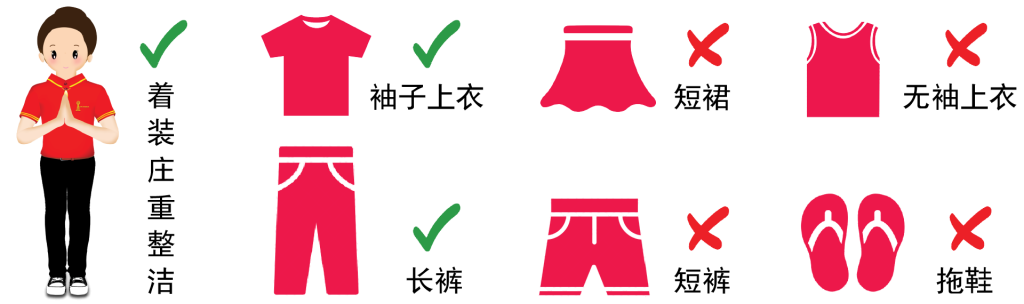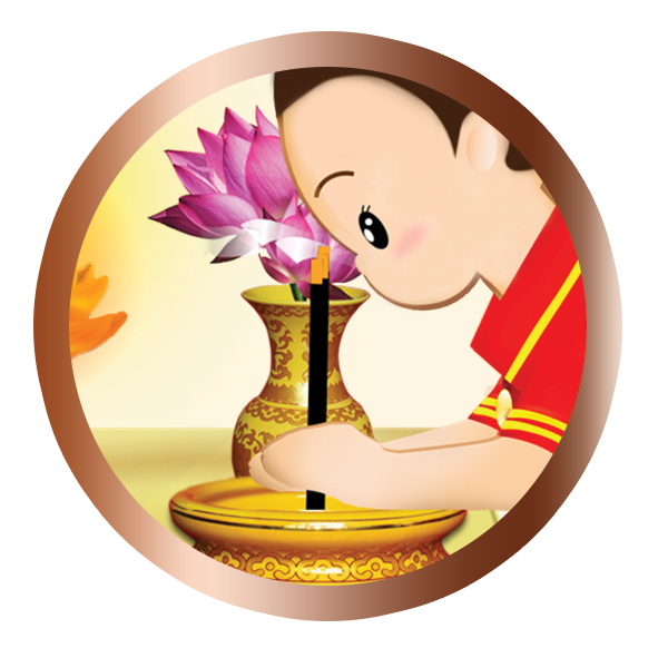 4. Stand up straight, put your palms together and make one bow to pay respect to Guan Yin Bodhisattva and all Bodhisattvas.
