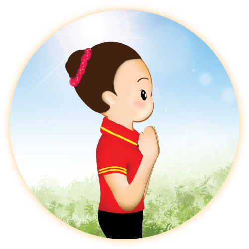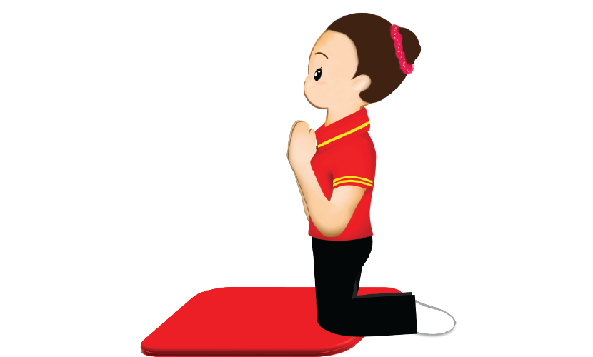 3. Raise the Little Houses slightly above your forehead. Visualise yourself kneeling down, then say the following prayer.