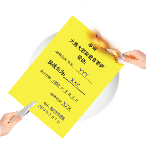 2. Hold the Application for True Name Form with a tweezer while burning. Note: Start burning the application form from top where it says “Sincerely Invite”