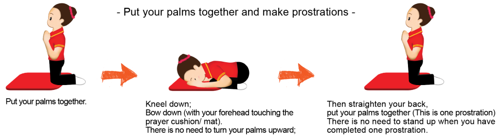 3. Repeat Step #1 - Put your palms together and make prostrations.