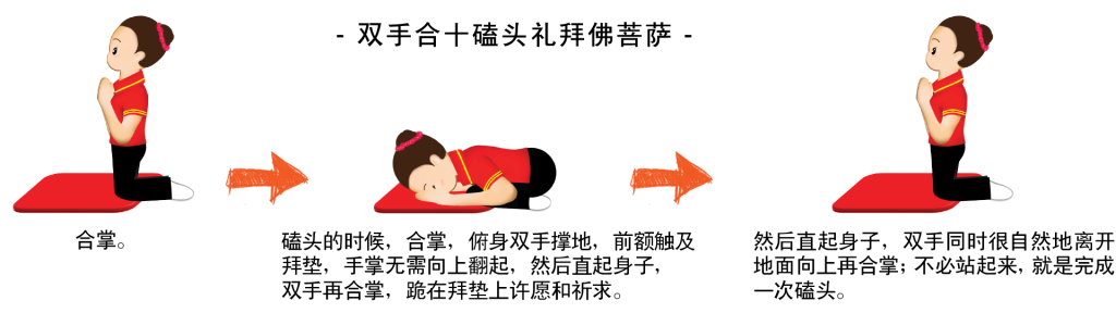 6. 站起来,双手合十,一拜或三拜,往后退一步, 就可以离开或者开始念经。