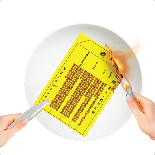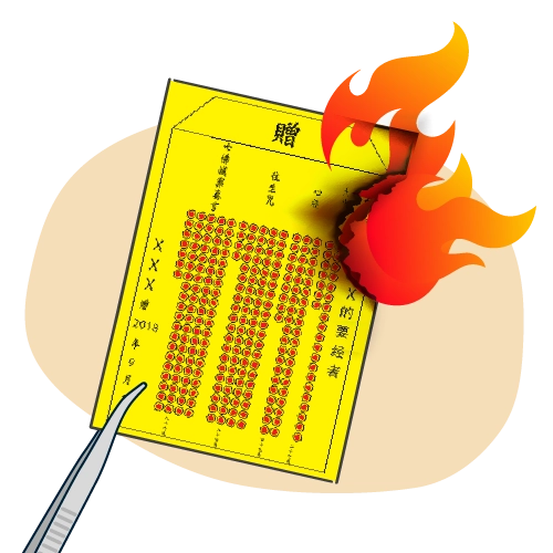 Hold the Self-Cultivation Record Form with a tweezer while burning. Note: Start burning from the upper left-hand corner where it says, “Offer To:”.