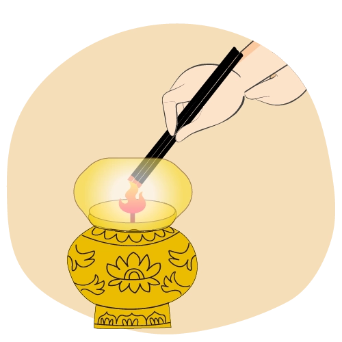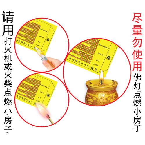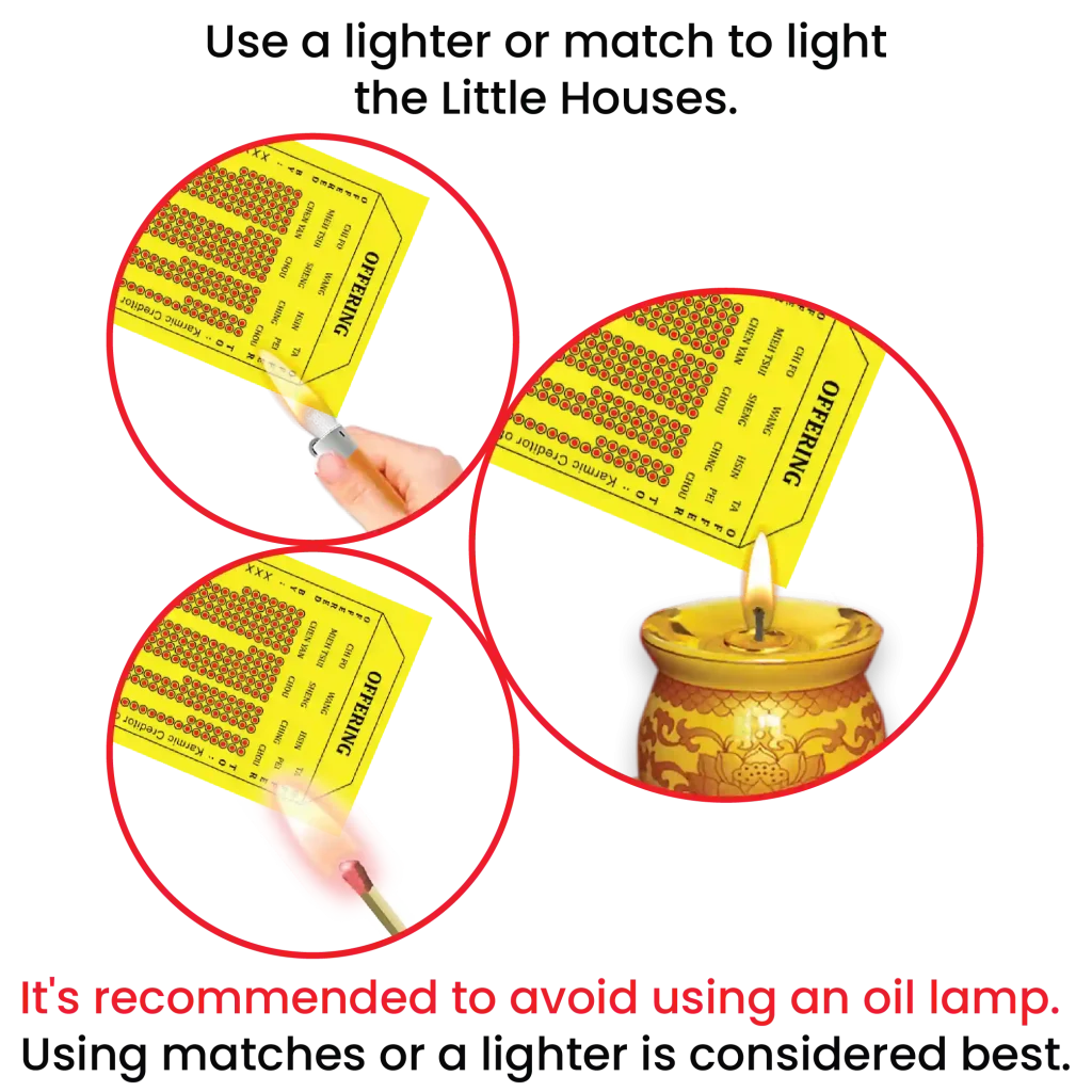 3. Note: You may light the Little Houses using the flame from the oil lamp on the altar, a match or a lighter.