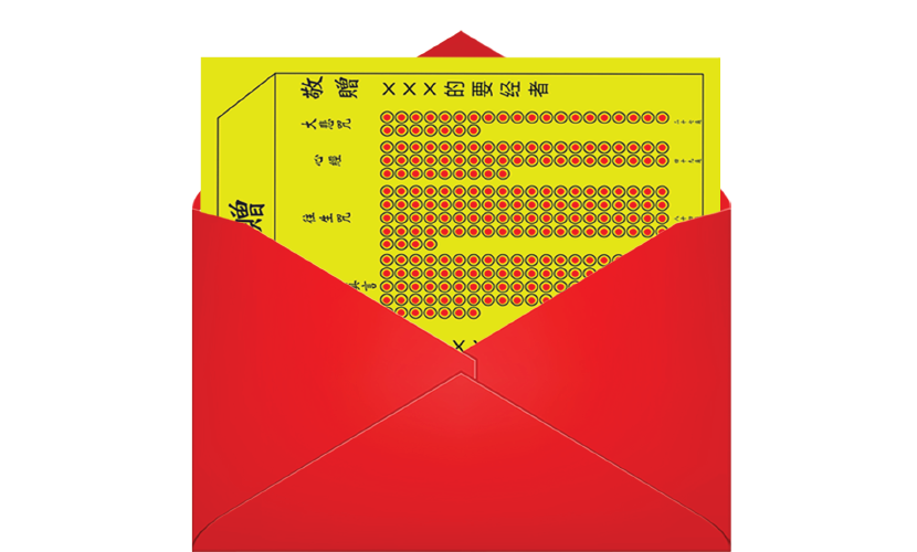 Take out the Self-Cultivation Record Form from the red envelope or red fabric.