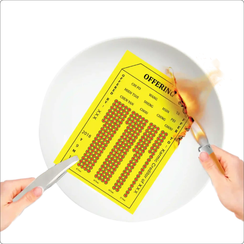 If you are burning the form on special days such as the 1st or the 15th day of the lunar month, you may target a specific wrong doing committed in this life and pray for repentance and eliminating the karmic obstacles. Alternatively, you can make a general statement when praying for repentance and elimination of karmic obstacles.