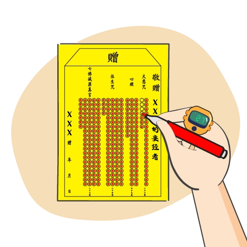 (ii) Recite the Great Compassion Mantra (Da Bei Zhou) 7 times and the Heart Sutra (Xin Jing) 7 times (may sit down and recite);